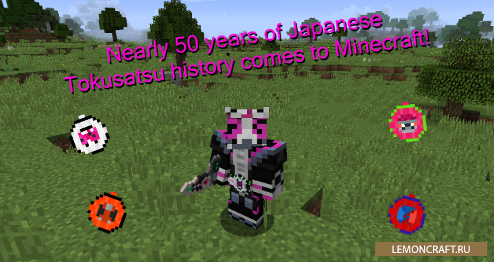 Мод на оружие, броню и мобов Kamen Rider Craft посвящен культовому японскому сериалу Kamen Rider и добавляет в игру множество предметов, оружия, брони и мобов, которые непосредственно связаны с этим сериалом. Кроме этого в игре появятся новые виду руд, которые и позволят получить вам новое обмудирование и оружие. Новая броня выглядит классно и состоит из трех деталей, добавлен специальный пояс, который вставляется в слот обуви и дает игроку специфические свойства.